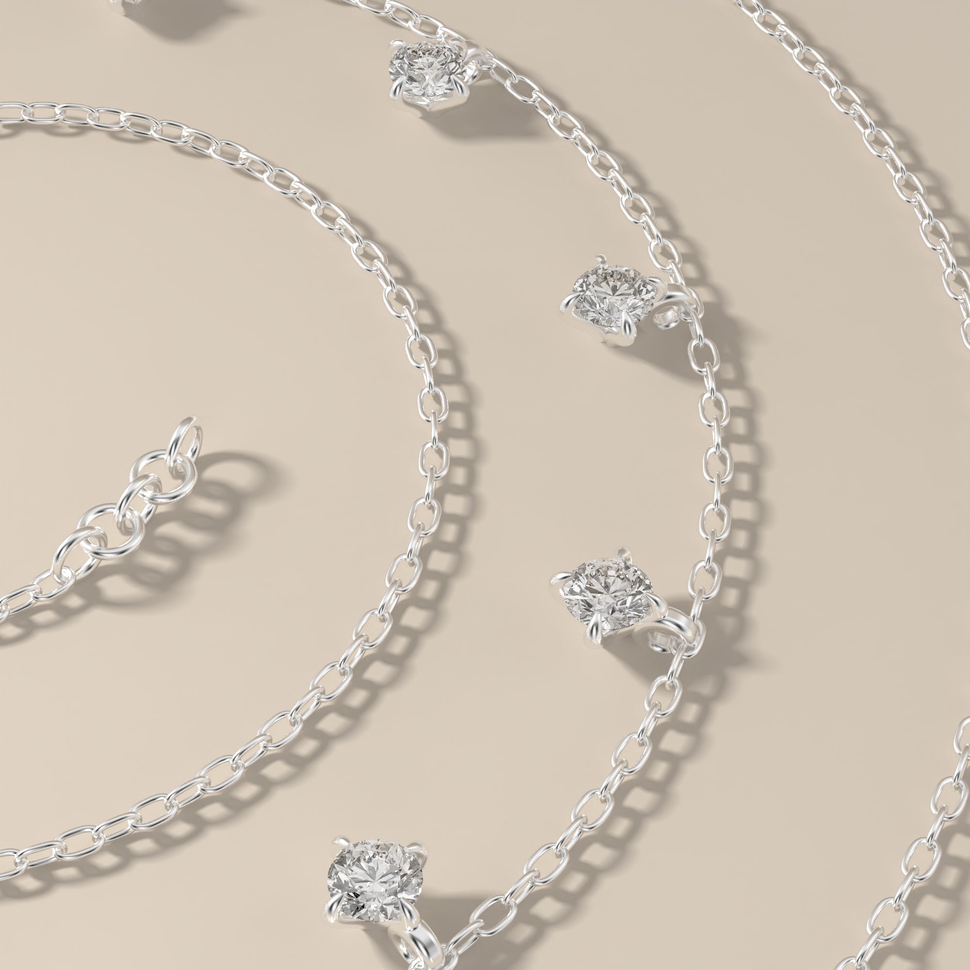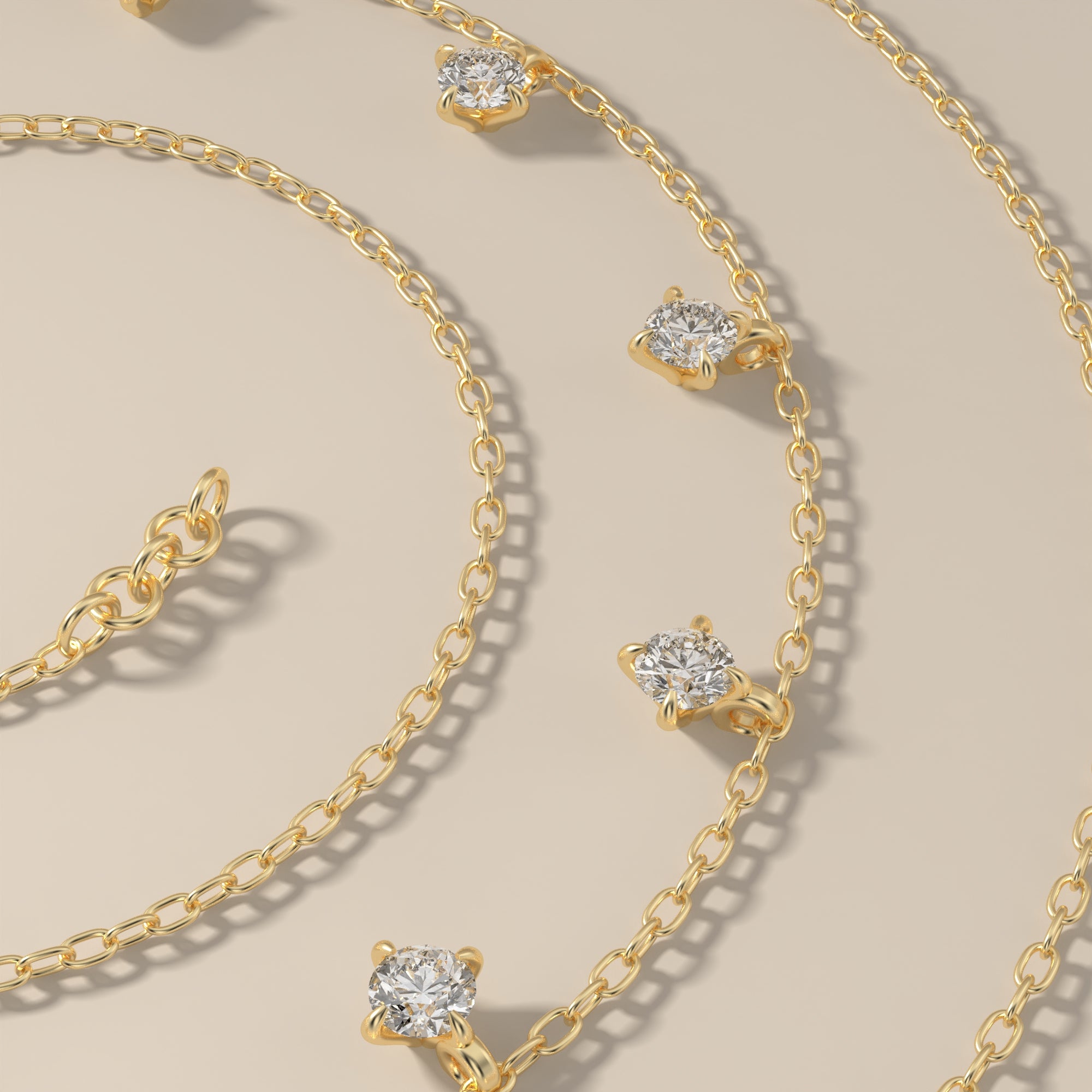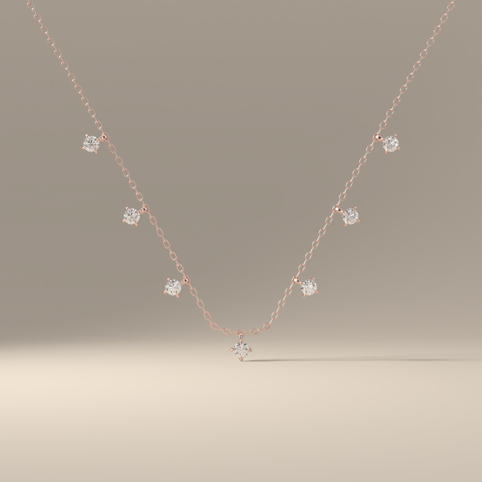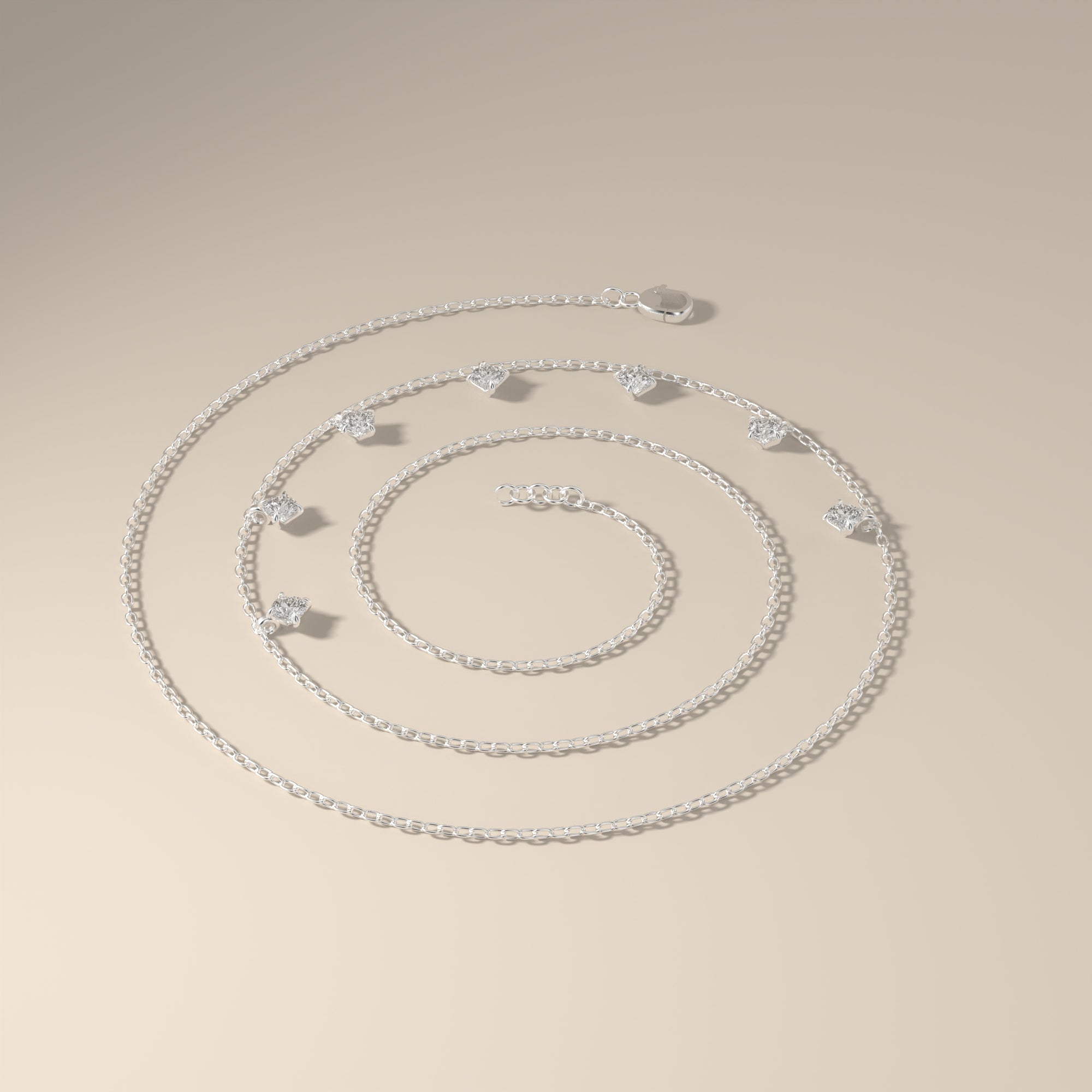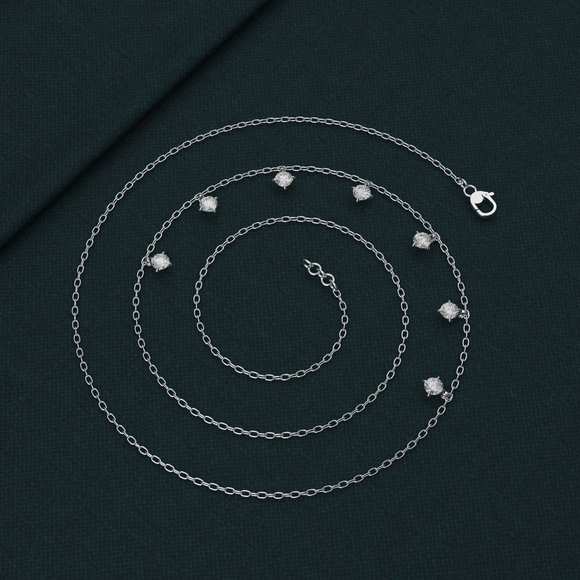 Delicately designed, this floating moissanite station necklace features sparkling stones set along a fine, solid 14K gold chain. Perfectly minimalist and effortlessly elegant, it complements any outfit—ideal for everyday wear or as a thoughtful, unique gift. Lightweight, durable, and exquisitely crafted for lasting beauty.